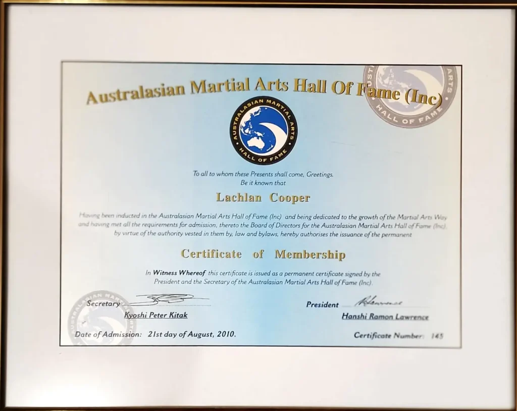Lachlan’s lifelong contribution to martial arts has been formally recognised with international honours, including: